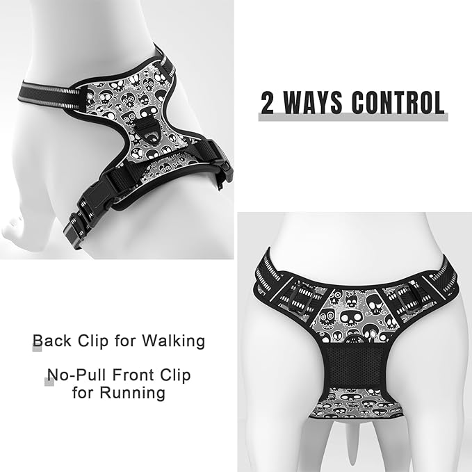 Rnivvi No Pull Dog Harness, Cute Reflective X-Large Sized Puppy Harness, Adjustable Soft Padded Vest for Large Dogs, Heavy Duty Pet Vest with Easy Control Handle for Walking Training, Black Skull