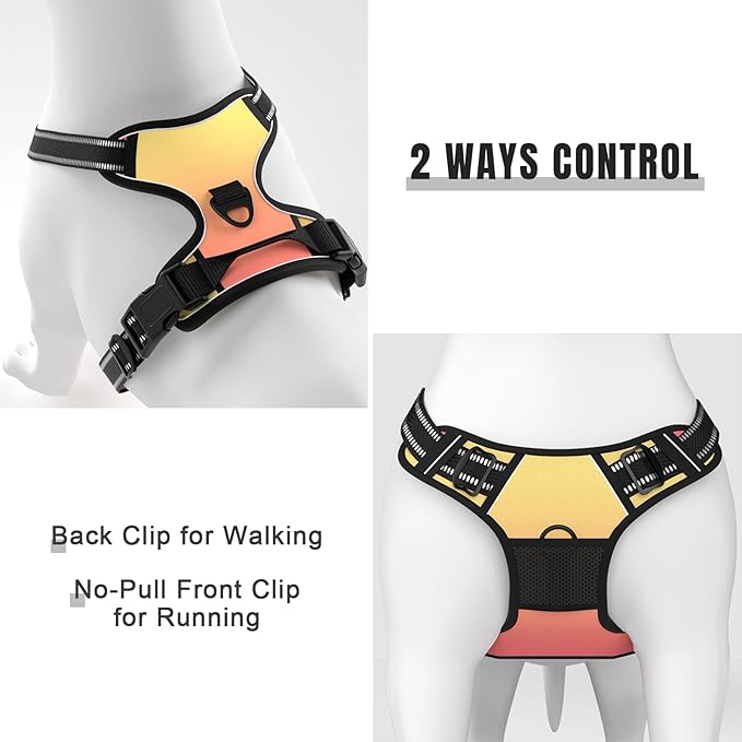 - No Pull No Choking: Our dog harness featured with 2 metal leash attachment,front clip prevent pulling and back for relaxed walking. The vest-style design disperses the pressure through shoulders and chest, no need to worry about the danger of choking