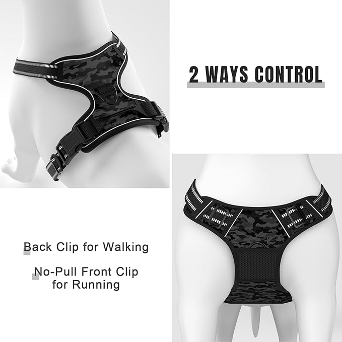 Rnivvi No Pull Dog Harness, Cute Reflective X-Large Sized Puppy Harness, Adjustable Soft Padded Vest for Large Dogs, Heavy Duty Pet Vest with Easy Control Handle for Walking Training, Black Camouflage