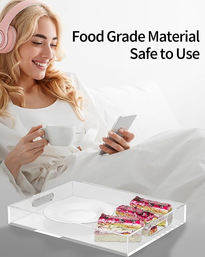 - Premium Acrylic Durability & Clarity: Crafted from ultra-clear, scratch-resistant acrylic, these trays withstand daily use while maintaining crystal transparency. Thick 2.1" walls prevent warping, with UV-resistant coating to avoid yellowing. Perfect for indoor/outdoor use in kitchens, bathrooms, or as chic vanity organizers.