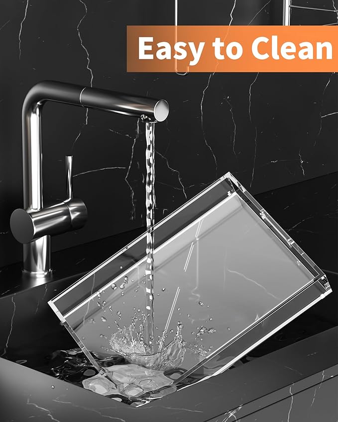 - Premium Acrylic Durability & Clarity: Crafted from ultra-clear, scratch-resistant acrylic, these trays withstand daily use while maintaining crystal transparency. Thick 2.1" walls prevent warping, with UV-resistant coating to avoid yellowing. Perfect for indoor/outdoor use in kitchens, bathrooms, or as chic vanity organizers.
