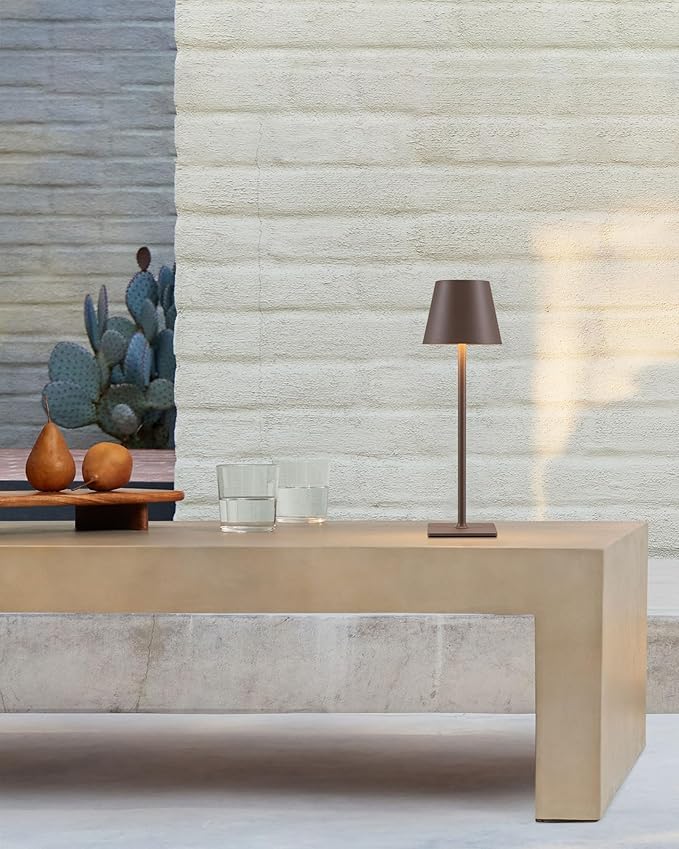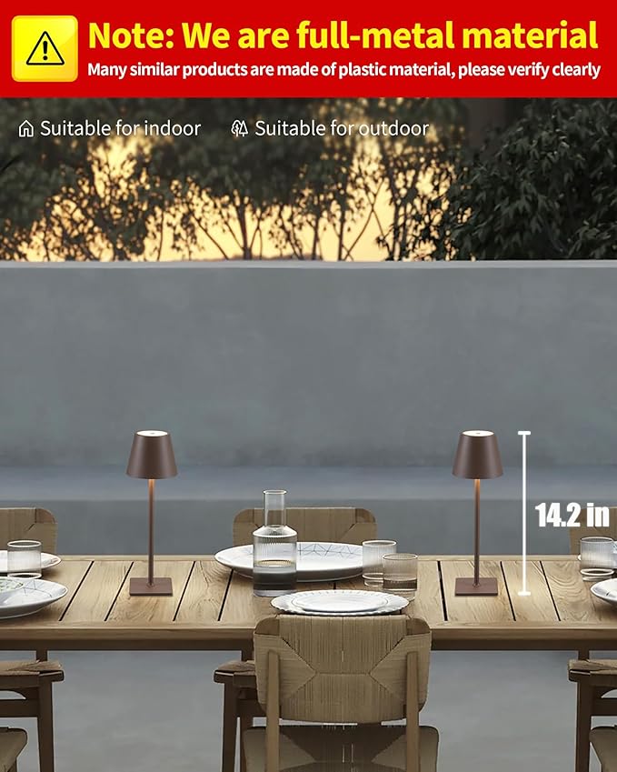 KDG 2 Pack Cordless Table Lamp,Portable LED Desk Lamp, 4000mAh Battery Operated, 3 Color Stepless Dimming Up, for Restaurant/Bedroom/Bars/Outdoor Party/Camping/Coffee Shop Night Light(Brown)