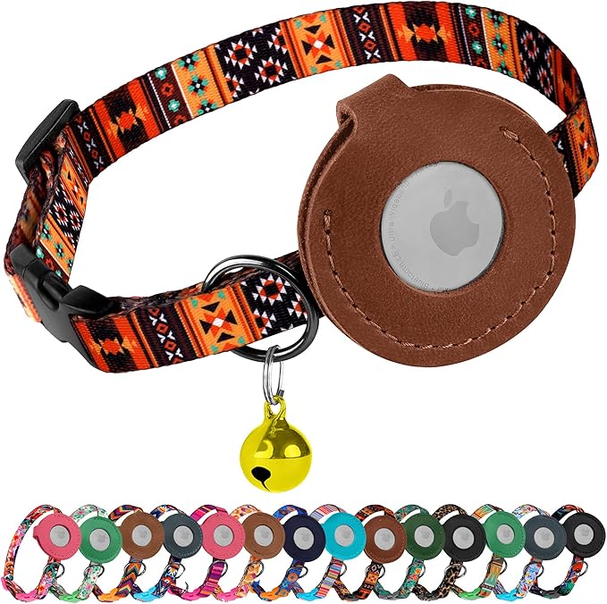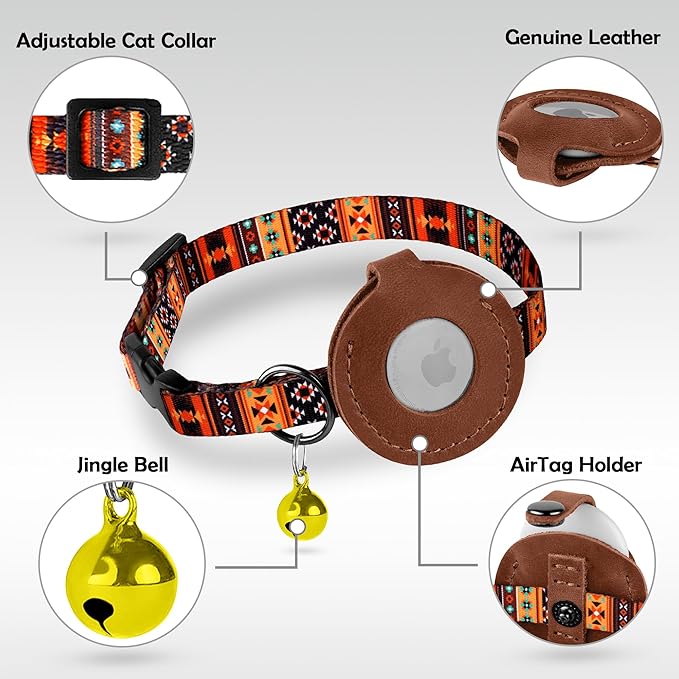 - AIRTAG CAT COLLAR: Our cat collar features a leather Airtag holder, allowing you to attach a tracking device (Airtag not included) for added security and peace of mind.