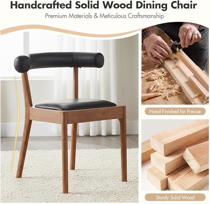 Kmax Dining Room Chairs Mid-Century Modern Leather Kitchen Chairs with Natural Walnut Finished Frame, PU Curved Back, Set of 6, PU Black