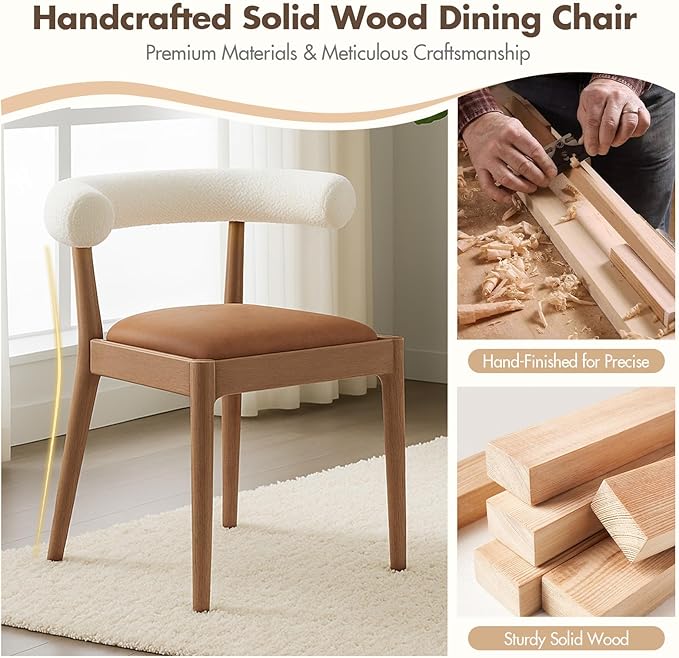 - Modern Minimalist Design - With its clean lines and softly curved backrest, this dining room chairs brings a sleek, Scandinavian-inspired look to your home. The warm wood tones and neutral upholstery blend seamlessly with both modern and rustic interiors