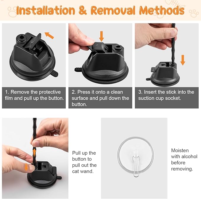 - Quality Materials: Our feather wand cat toys are made of high-elastic steel wire that is not easy to break, and the upgraded powerful suction cups can withstand 22 lbs of tension, so that your beloved cat can play with our cat teaser toy with no worry