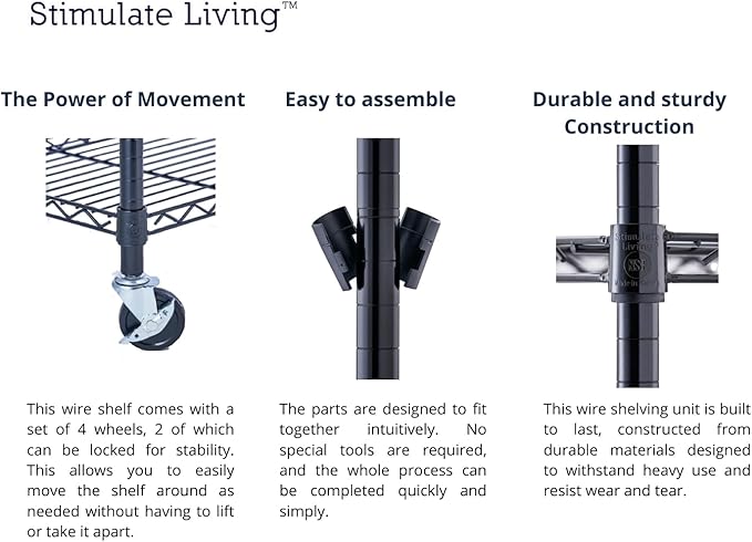 48"x24"x72" Prime Heavy Duty Black 5-Tier Steel Wire Shelving NSF 4000 LBS MAX Capacity Storage Rack for Commercial, School, Home, Garage, Warehouse, Industrial, and Hospital Uses (with Wheels)