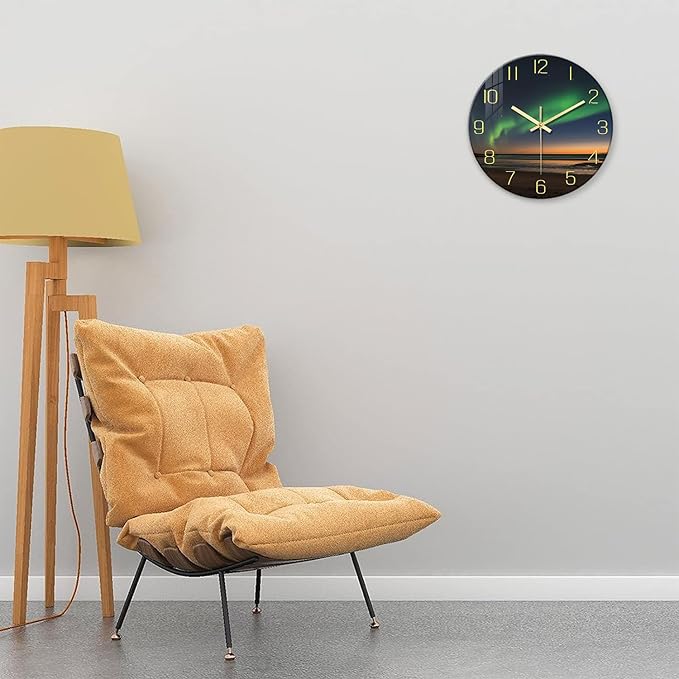 - 1.[Size] - Constantplanet aurora wall clock sise is 14 inches x 14 inches, HD glass, frameless round teal wall clock, aurora wall clock decor, you can enjoy looking at this beautiful clock with an aurora pattern every day.