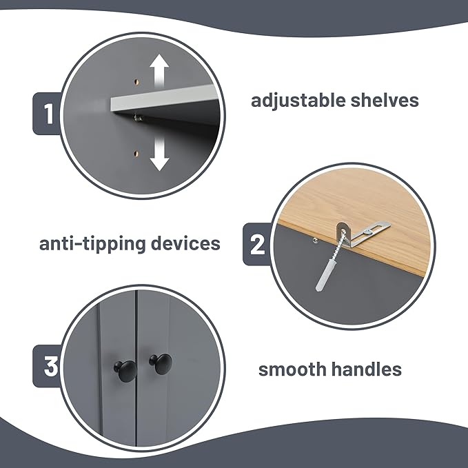 - 【Adjustable Shelves】The cabinet of our kitchen pantry features two adjustable shelves, giving you the flexibility to position them at three different heights according to your storage needs. The cabinet is neatly divided into four parts below, making it easy to sort and access various items.