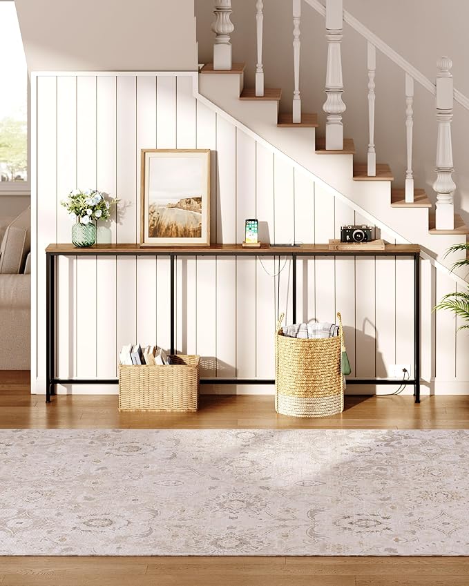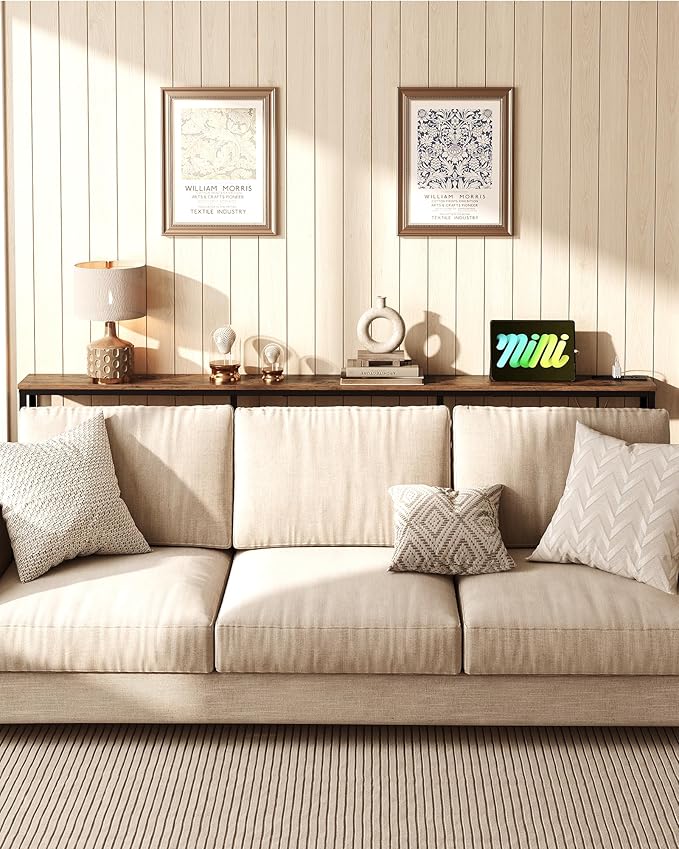 - Effortless Charging: Customize your charging experience with this narrow sofa table's power strip, featuring 2 standard sockets and 2 USB ports. Flexibly position the outlet on the side or in the middle to suit your charging habits for convenience and accessibility