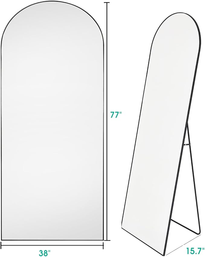 Arched Floor Mirror, 41" x 81" Oversized Full Body Mirror, Freestanding, Arch Mirror, Wall Mounted for Bedroom, Black