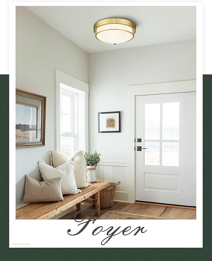 - MODERN DESIGN: This light fixtures ceiling mount is made of high-quality metal frame and frosted glass, which is durable and non-glare. Simple shape and brass gold finish design, can perfectly match any decoration. The semi flush mount ceiling light not only provides you with lighting, but also enhances your sense of life atmosphere.