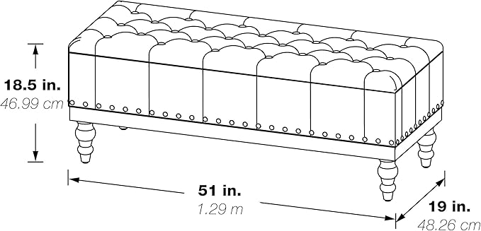 - Highlight chic traditional styling with button tufting, turned leg and nailhead trim.