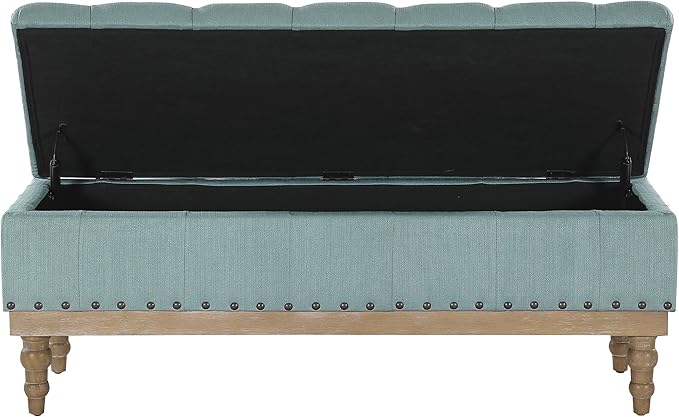 OSP Home Furnishings Landis Button Tufted Padded Top Storage Bench with Brushed Legs, Sea Blue Fabric