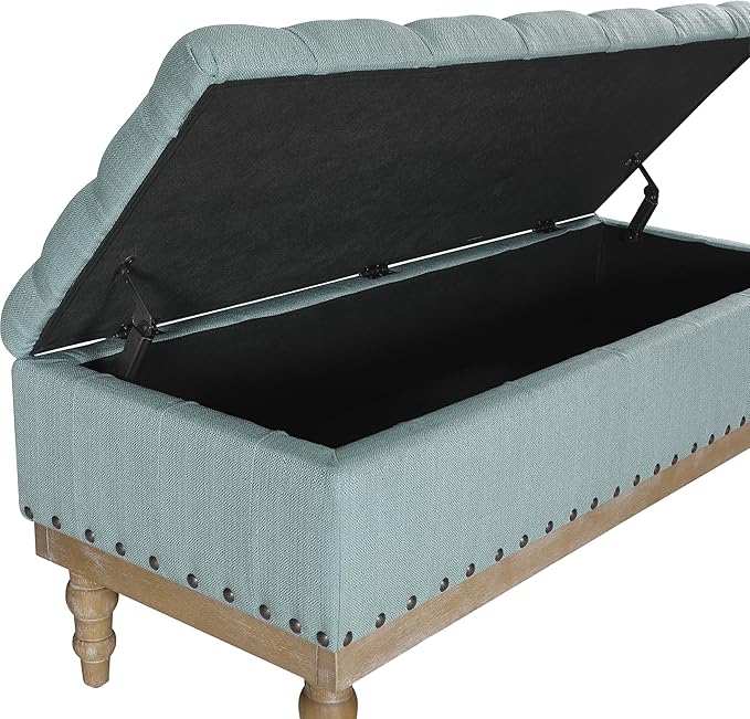- Simple screw on leg assembly increases the appeal of this beautiful addition to any home looking for extra seating paired with added storage.