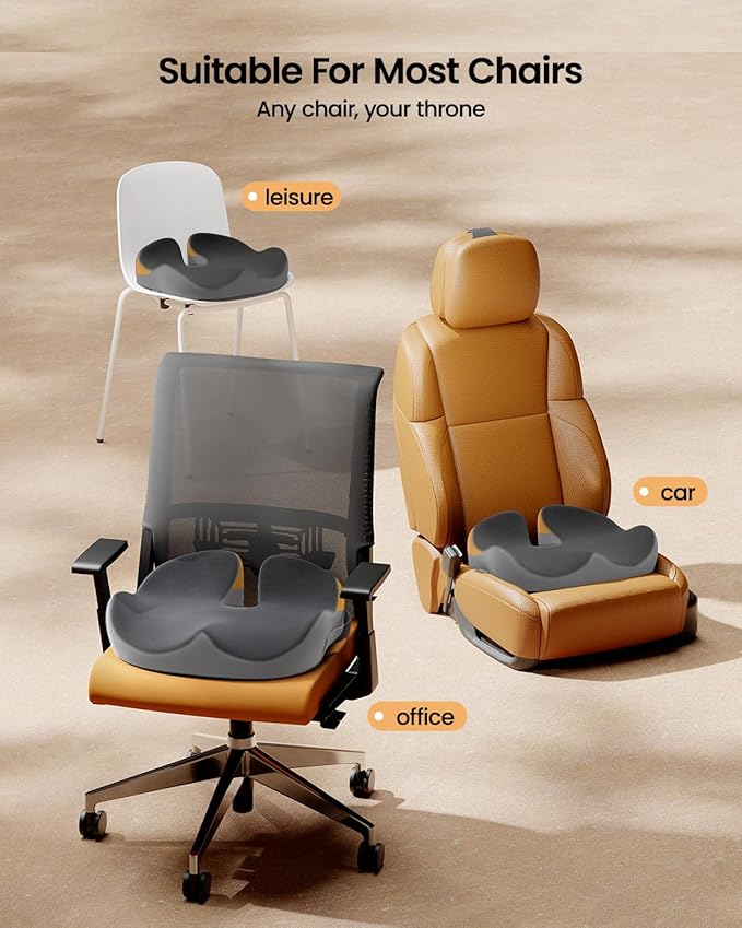 - Pressure Relief Seat Cushion: Split design targets pressure points on hips, thighs, coccyx for relief from lower back, hip discomfort, promoting proper posture. Ideal for long hours seated, offers relief from back and hip