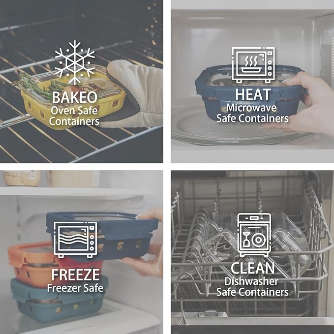 - 【MEALPREP IN STYLE】The removable extra-thick silicone protection sleeve comes in a variety of colors, adding fun to meal prepping. It also prevents the container from chipping and breaking, and is safe for use in both the dishwasher and microwave. Additionally, the silicone sleeve provides protection when removing the container after heating, preventing burns and ensuring safer handling