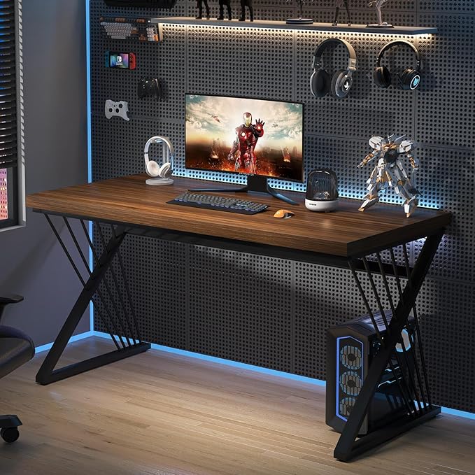 - Modern Computer Desk: Upgrade your home office with this modern minimalist writing table, designed for versatile use as a gaming desk or a study work desk. Rustic walnut wood grain surface, industrial style and simple, contemporary lines make home office desks perfect fit for any bedroom or living room, providing a comfortable atmosphere for work, study, writing or relaxing sessions.