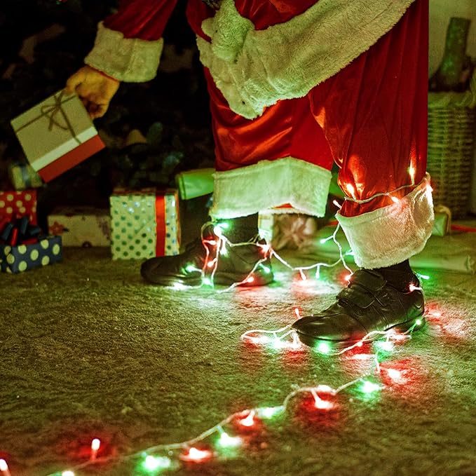 - Connectable LED Christmas Lights: Total length: 33m/109ft, LED string light length: 30m/99ft, lead wire length: 3m/10ft. Red and green Christmas lights come with male and female safety plug, connect up to 3 sets lights, the connectable led string lights are perfect for decorating large areas.