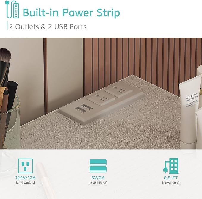 - Power Up Your Routine: Keep your devices charged with the built-in charging station with USB charging port. No more scrambling for outlets—your phone and beauty tools will always be juiced up and ready to go.