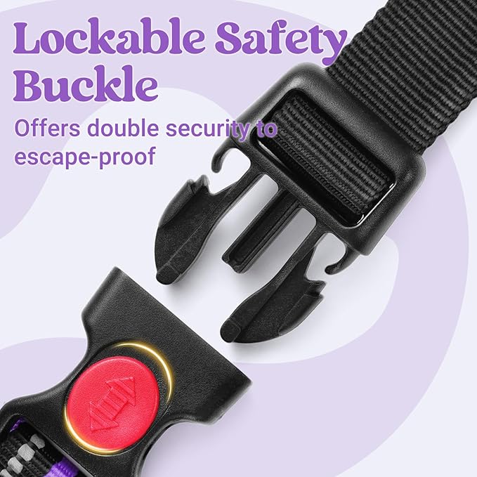 - Perfect Protection: The dog harness features sturdy and wear-resistant nylon Oxford fabric with reinforced stitching for high tensile strength. A lockable buckle at the neckline provides secure fastening, preventing accidental release under excessive force. Wide-area reflective stitching enhances visibility, making it suitable for nighttime use
