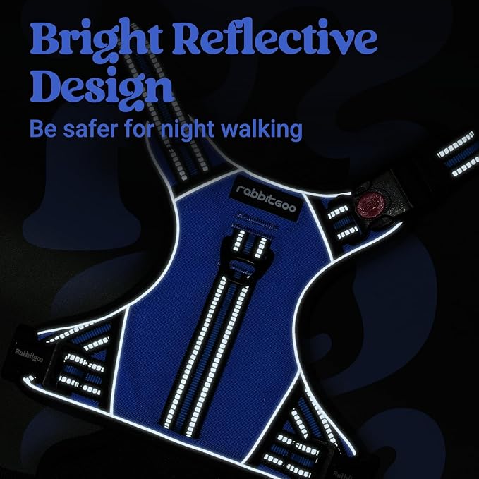 rabbitgoo Dog Harness Small Sized Dog, No Pull Pet Harness with Soft Padded Handle, Adjustable Reflective Vest with 3 Buckles, Easy Walking Harness with 2 Leash Clips, Blue, S