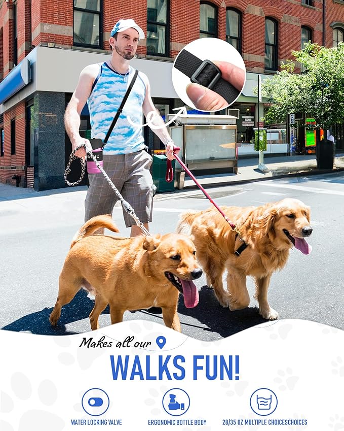 - New Upgrade Leak-Proof Design: dog water bottle dispenser designed with upgraded push-button lock keeps water clean and prevents spills. This dog water dispenser is designed with silica gel seal ring which can prevent water leakage efficiently. This makes it a reliable dog portable water bottle and a safe choice for your pet