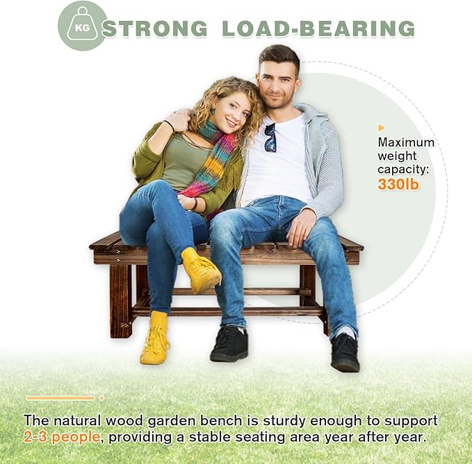 - STURDY CONSTRUCTION: Wooden bench uses solid natural wood. The natural texture is clear and hard. The high-temperature carbonization process reduces the water absorption capacity of the product, making it not easily deformed, corrosion-resistant, environmentally friendly, and resistant to sunlight. The surface is smooth and not easily damaged