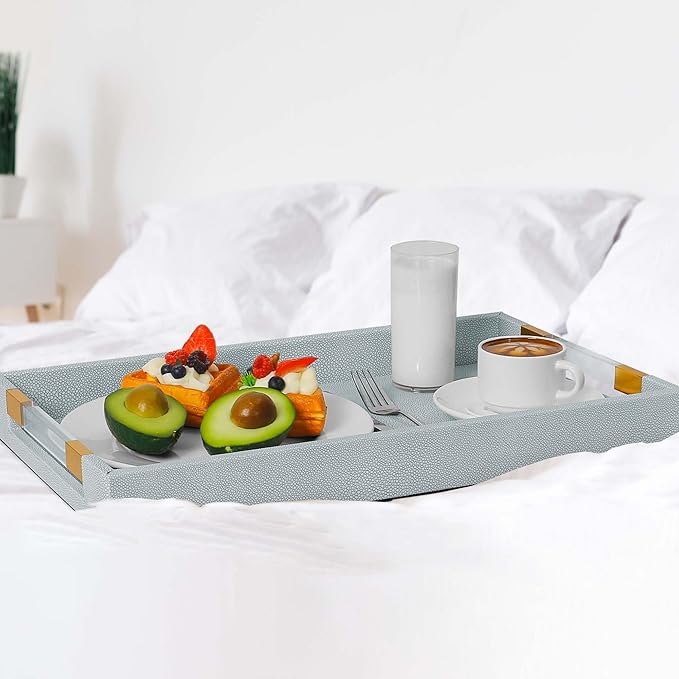 - 【Multipurpose Serving Tray and Stylish Deco】Use this serving tray as a food tray or serving tray with handles. Its generous size makes it a large serving tray for ottoman and a convenient couch tray for entertaining guests or enjoying a meal in the living room. Whether you need an ottoman coffee table tray or a tray for coffee table, this large serving tray is perfect for organizing your desk accessories or displaying your favorite items like a perfume tray or vanity tray.
