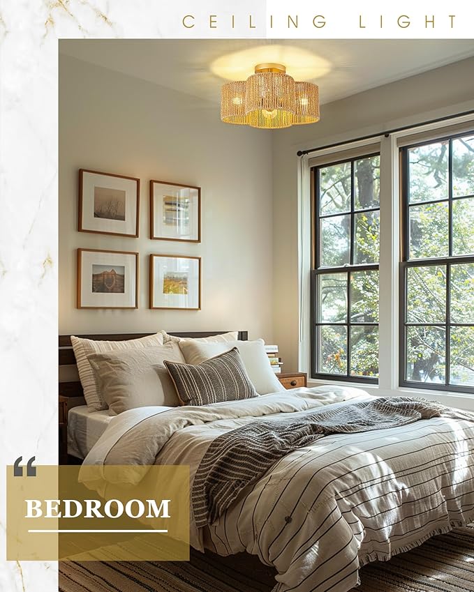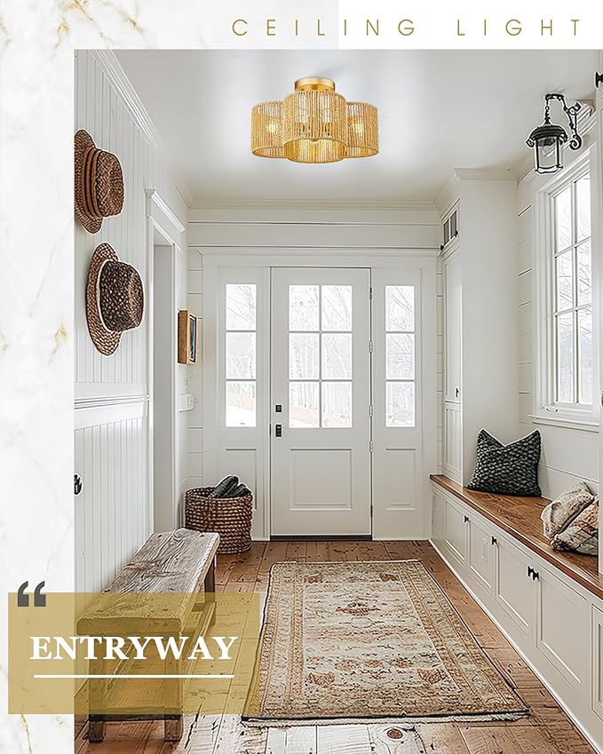 - WIDE APPLICATIONS: The hand-woven rattan shade of light fixtures ceiling mount cast captivating shadows, creating a cozy, natural and vintage ambiance that elevates the comfort of any space. Perfect for nursery, closet, kitchen, laundry room, hallway, foyer, living room, bedroom, entryway, children's room, basements, and more.