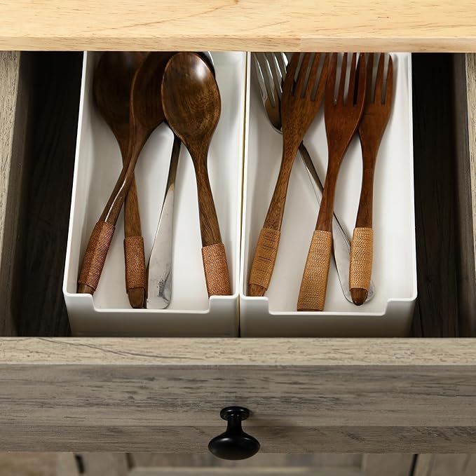 - Roomy Storage: This buffet cabinet utilizes 3 large drawers for utensils or napkins and 2-tiers offering storage space for plates, plastic containers, pots, or pans. Keep organized behind doors so your items stay safe and dust-free. The shelf inside is 3-level adjustable to meet various storage needs.