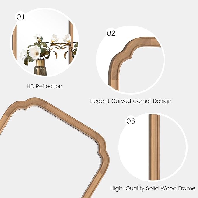 - Natural Wood Framed Mirror: This wall-mounted mirrors are handcrafted with care and attention to detail and design, High-Quality solid wood frame, and Mirror Materials to guarantee the sturdiness and consistent aesthetic beauty of the design.