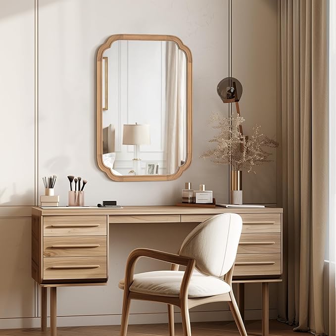 - Unique design & Decorative Mirror: The wall mirror with decorative solid wood frame, ingenious craftsmanship, can be matched with a variety of decorative styles to perfectly fit your home. Visually expand the space, increase the light, enhance the beauty of any room in the home. Fit bathroom, bedroom, living room, entryway, etc.