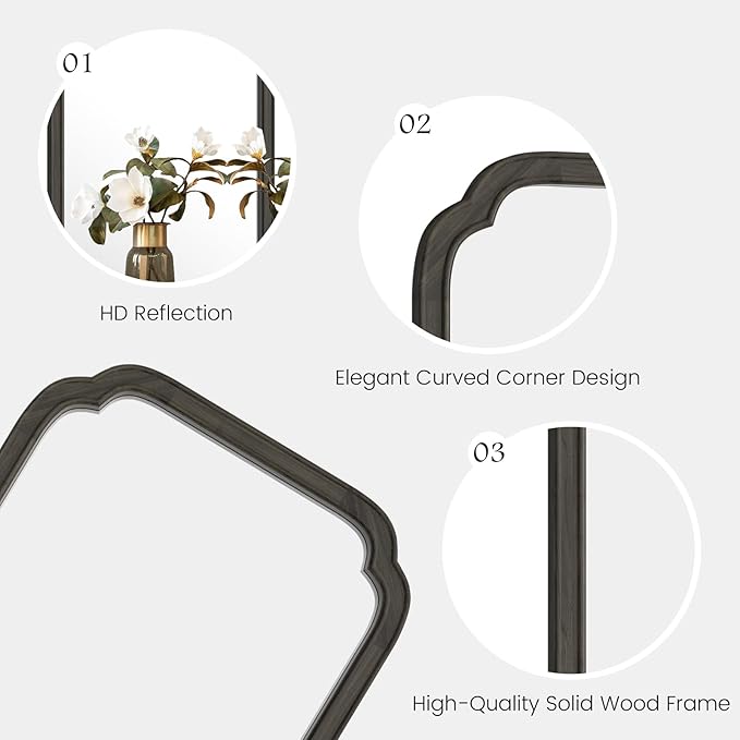 - Unique design & Decorative Mirror: The wall mirror with decorative solid wood frame, ingenious craftsmanship, can be matched with a variety of decorative styles to perfectly fit your home. Visually expand the space, increase the light, enhance the beauty of any room in the home. Fit bathroom, bedroom, living room, entryway, etc.