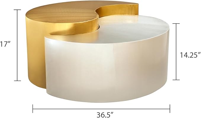 Modern Contemporary Luxury Ying-Yang 36" Coffee Table Set, Sculptural Design with Aluminum Frame for Living Room, Entryway, Home & Office, Gold & Silver Dual Tone Coffee Table