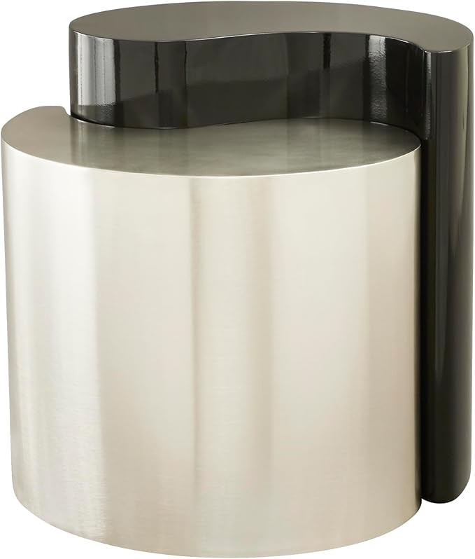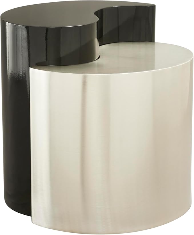 Modern Contemporary Luxury Ying-Yang 20" Height End Table Set, Sculptural Design with Aluminum Frame for Living Room, Entryway, Home & Office, Black & Silver Dual Tone End Table