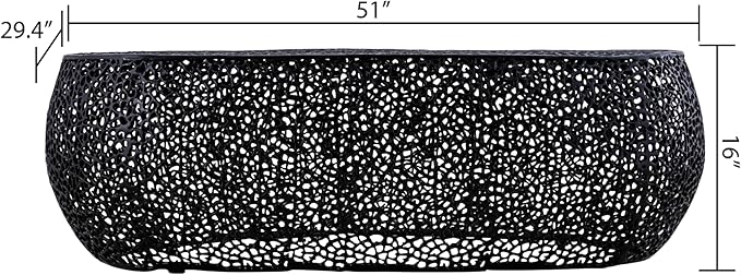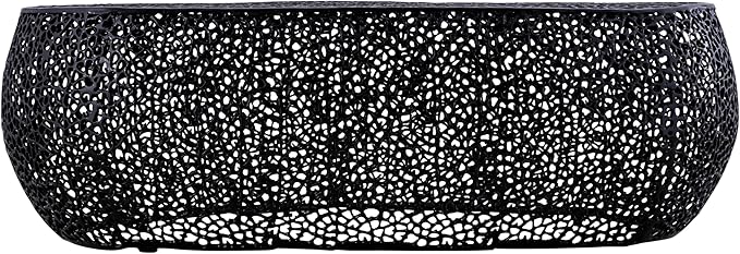 Modern Contemporary Oval-Shape 50" Coffee Table, Solid Aluminum intrigued Design, Mesh Cocktail Table, Creative Center Table for Living Room and Bedroom, Casted in Black