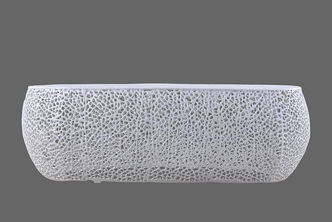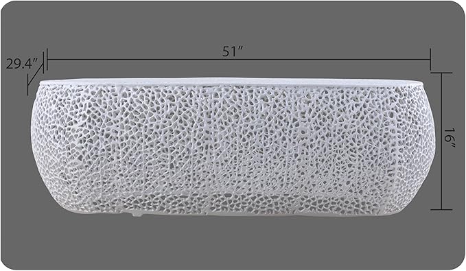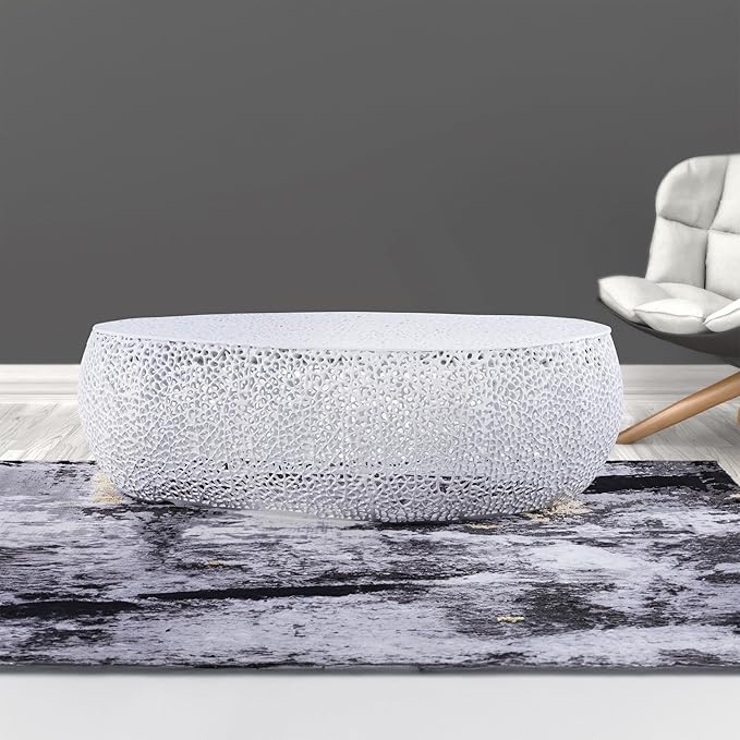 Modern Contemporary Oval-Shape 50" Coffee Table, Solid Aluminum intrigued Design, Mesh Cocktail Table, Creative Center Table for Living Room and Bedroom, Casted in White