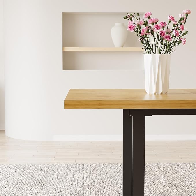 ZckyCine Modern Rectangular Dining Table for 4-6, Adjustable Wood Table with Metal Legs, Kitchen or Dining Room Table