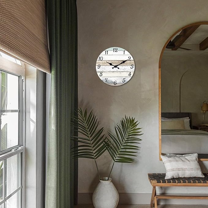 - 3.[Silent] - Silent wall clock, no ticking sound, no noise, this rustic wall clock won't disturb you even when you are reading, working, thinking, chatting or sleeping.