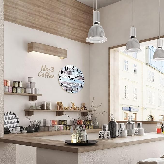 - 5.[EXQUISITE DECORATION] - The farmhouse wall clock keeps time accurately and stylishly, samll wall clock for kitchen, living rooms, bedrooms, bathrooms, classrooms, guest rooms, offices, restaurants, cafes, libraries, or walls of any color.