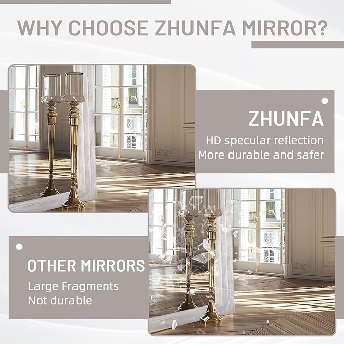 - 【Experience Clear Reflections】our Full Length Mirrors Are Made of 3mm Tempered Glass. Our State-of-the-Art Technology Ensures High-Definition Imaging, Delivering Natural and True-to-Life Reflections Without Any Distortion or Blurring. Equipped with Explosion-Proof Film Glass with Excellent Craftsmanship to Ensure Double Protection. Double Explosion-Proof Protection on the Front and Back, Providing You with Strong Safety