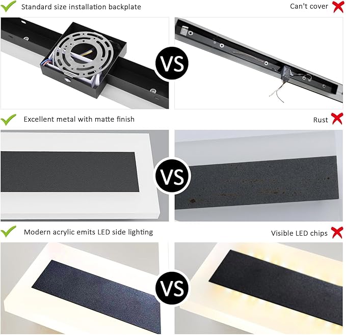 - 【 Upgraded — No More Unsightly Gaps 】 In comparison to other linear outdoor wall lights, LamQee has specially designed 4.3 inch mounting backplate (excluding the 11.8" and 15.8" sizes), to address the issue where the linear shape makes it difficult for the mounting bracket to fully cover and conceal the junction box; this ensures that the wall surface will not awkwardly expose the junction box, allowing for seamless integration with the wall