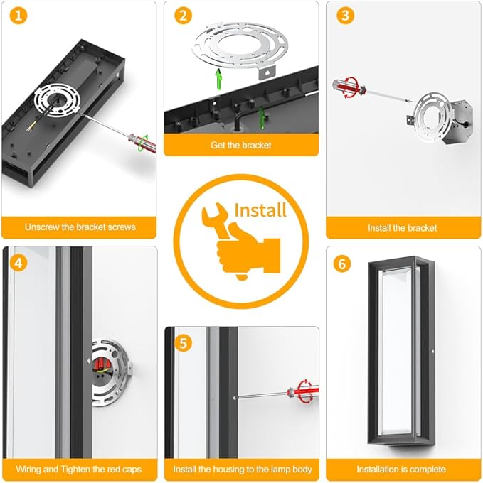 - 【Installation and Widely Applications】This light is IP65 Waterproof.Adopt US Standard Bracket design,electric Hard-wired with wall lamp bracket, Contains all installed accessories and installation instructions.Follow the instruction, you can install it easily by your own.Best for courtyards, balconies, bedrooms, exhibition courtyards, bedrooms, exhibition halls, restaurants, cafes, squares, corridors, stairs, hotel, etc.