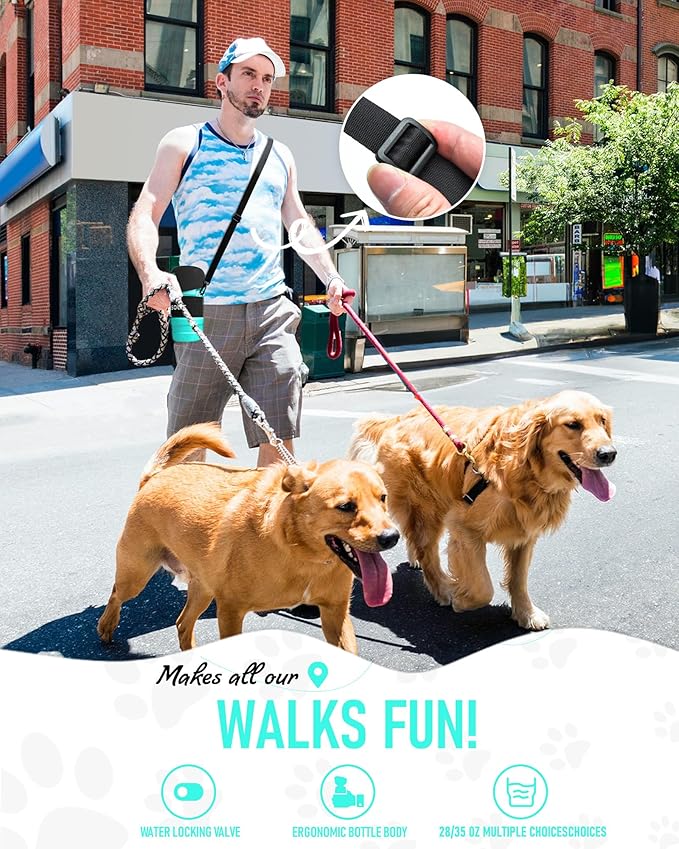 - New Upgrade Leak-Proof Design: dog water bottle dispenser designed with upgraded push-button lock keeps water clean and prevents spills. This dog water dispenser is designed with silica gel seal ring which can prevent water leakage efficiently. This makes it a reliable dog portable water bottle and a safe choice for your pet