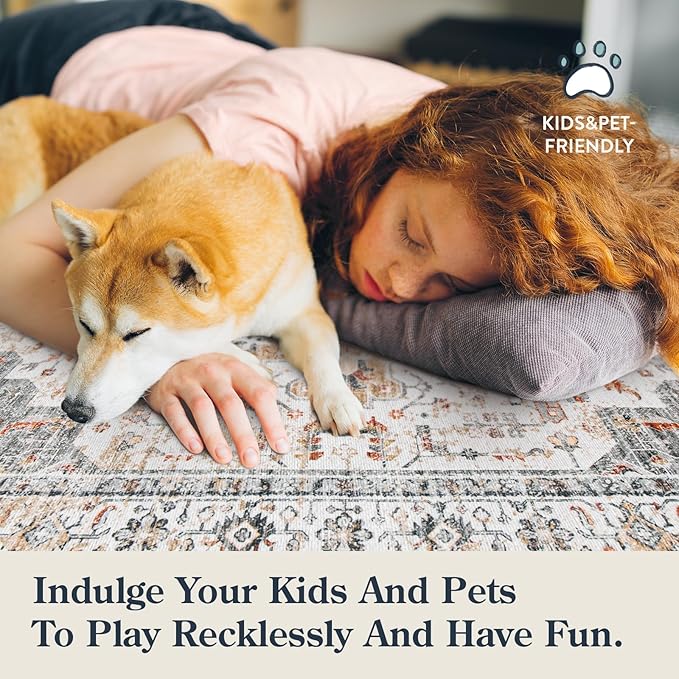 - [Vintage Design Rug] - This washable rug features reddish-brown oriental medallion pattern design & detailed printed rug technology, and purposeful distressing to add vintage appeal to your space