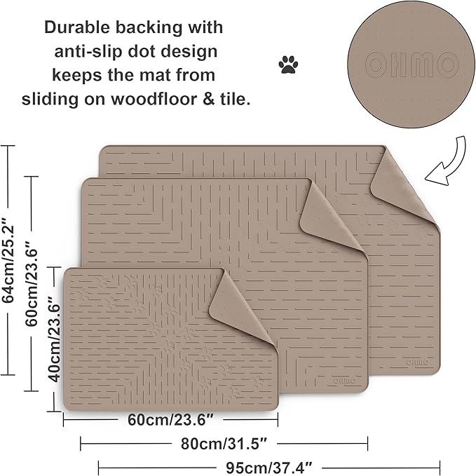 OHMO Cat Litter Mat Large Trapping Mat Premium Silicone Rubber 31.5x23.6 Beige,Waterproof and BPA Free Kitty Litter Box Mat, Easy to Clean and Keeps The Floor Tidy