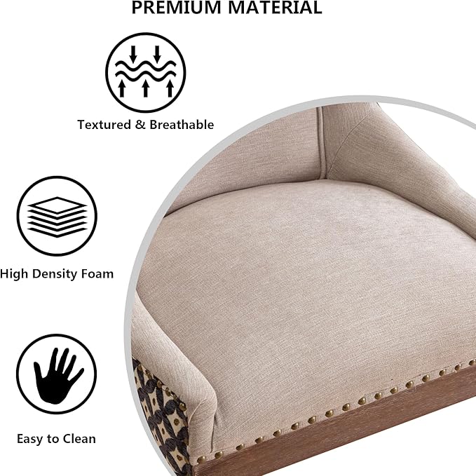 Farmhouse Dining Chairs Set of 2, Upholstered Fabric Dining Room Accent Chairs with Wood Legs & Bronze Nailhead, High Wingback Kitchen Chairs for Living Room Hotel Apartment, Beige Patterned