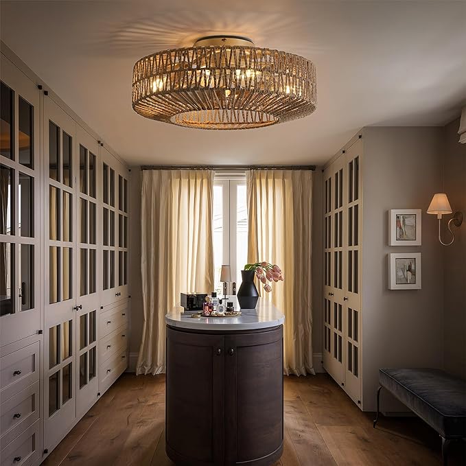 - 【Bulb Socket】This flush mount fandelier compatible with all E26 screw socket bulbs (60W max), including LED, CFL, or incandescent bulbs. Requires 𝟰𝘅𝗘𝟮𝟲 𝗯𝗮𝘀𝗲 𝗯𝘂𝗹𝗯𝘀 (𝗻𝗼𝘁 𝗶𝗻𝗰𝗹𝘂𝗱𝗲𝗱), you can choose your own brightness.