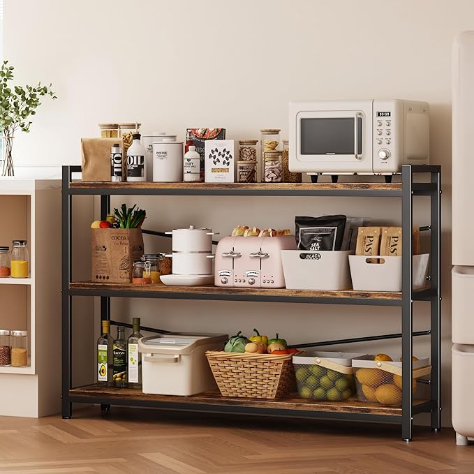 3 Tier Bookshelf 47.24" Width, Wood and Metal Etagere Bookcase, Vintage Farmhouse Modern Wooden Large Book Shelf for Home Living Room Bedroom Office Storage(Rustic Brown)